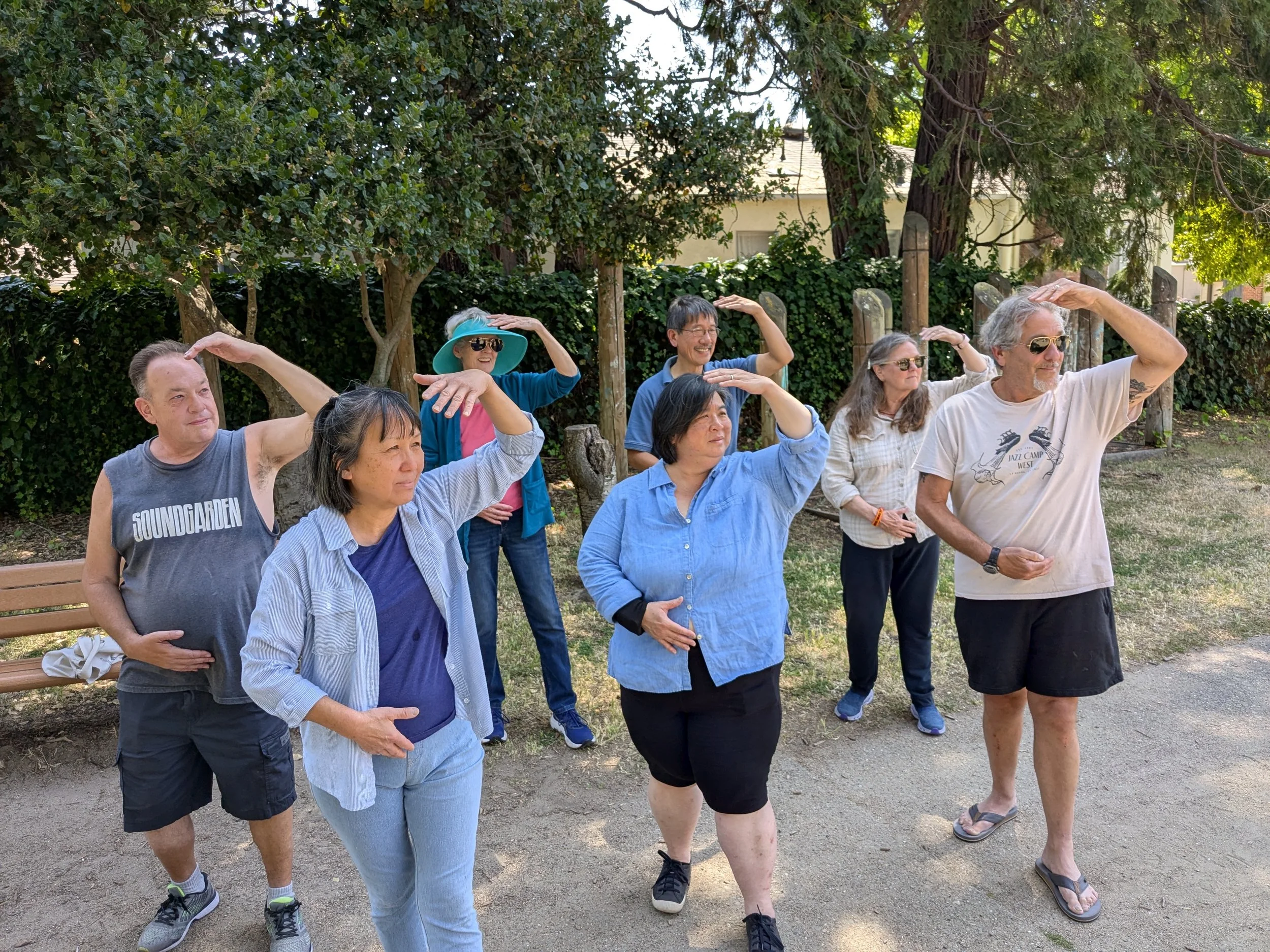 “What’s the difference between a moving meditation and a passive meditation,” you may ask. “Nothing and everything” might be my reply. We’re practicing Stillness in Action when we do the Form, and Action in Stillness when practicing sitting or standing meditation. The Yang expression of DYQG moves energy systematically throughout the body, clearing obstructions, expelling stagnant qi, thereby harmonizing or balancing the body-mind-spirit alchemy. The Yin aspect of DYQG provides an opportunity for us to become steeped in that sense of wholeness, allowing qi to attend places in the body that need healing.